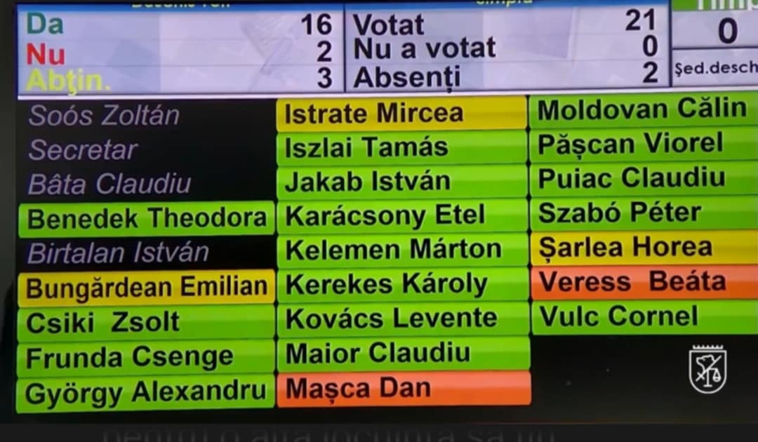 A beruházást ellenezte a Szabad Emberek Pártjának két tanácsosa, tartózkodással szavazott három tanácsos. A Nemzeti Liberális Párt két képviselője, a Szociáldemokrata Párt és az RMDSZ összes képviselője pedig megszavazták a határozattervezetet.